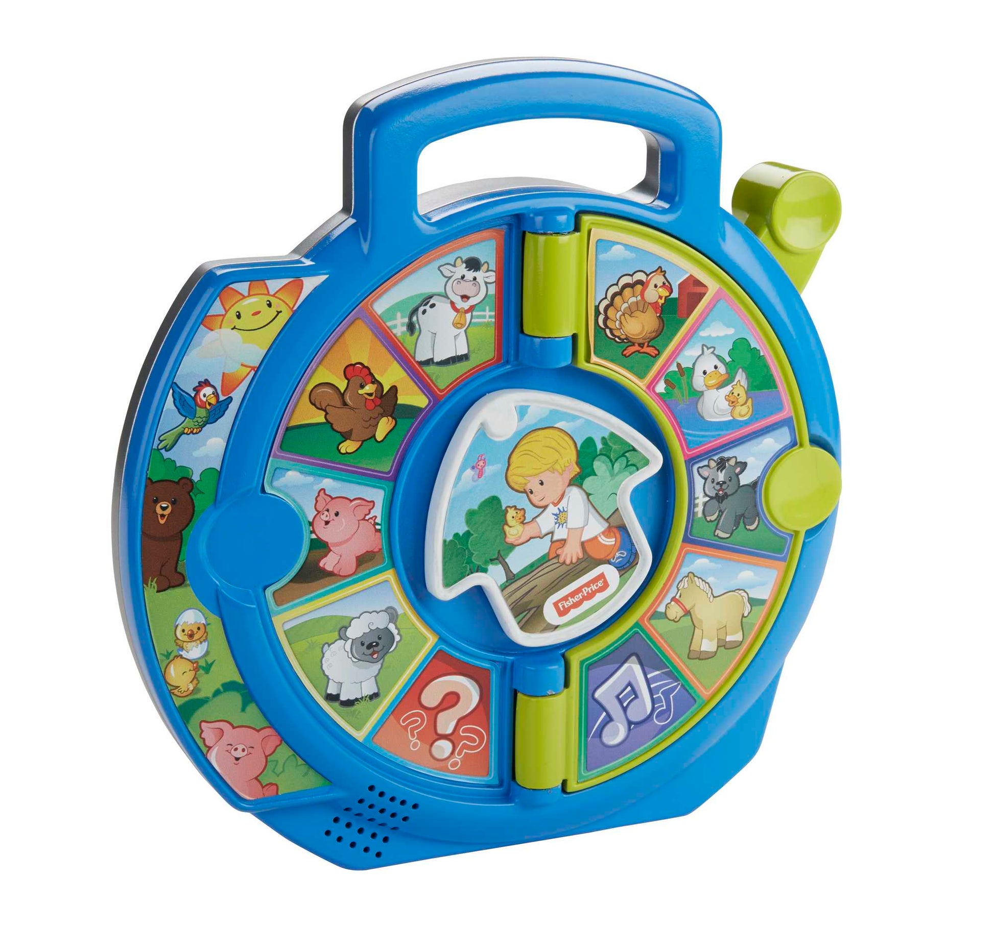 From the farm and into the wild, the Little People World of Animals See 'n Say musical learning toy from Fisher-Price helps introduce toddlers to a variety of creatures in the animal kingdom. Toddlers can choose one of two pages, then point Eddie to an animal and pull the lever to discover its name and hear what it says! Fun songs and an interactive quiz mode enhance the learning play. Ages 18 months +