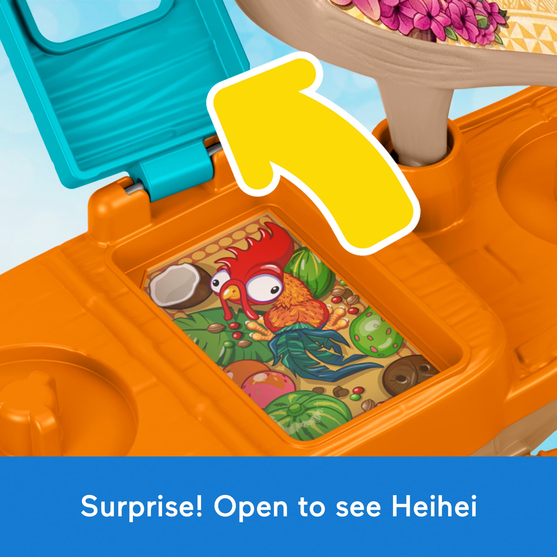 Young Disney fans can “set sail” on exciting adventures with Disney Moana and her pal, Maui, with this Little People toy boat and figure set from Fisher-Price. The push-along toy canoe features fun wave-like motion as kids roll it along, plus a pivoting sail, spinning oar and hatch that opens to reveal Heihei. Kids can place Moana and Maui on board and push to send the friends sailing along. Ages 1 1/2 - 5 years