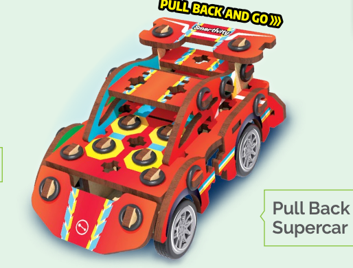interactive toys—Pull Back Supercar, Flapping Bird, Rockin’ Robot, and more! Each kit includes