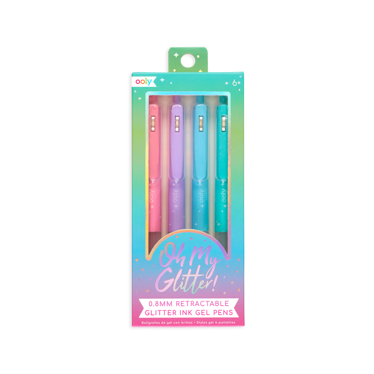 Make your writing stand out with a bit of sparkle. Oh My Glitter! Gel Pens have 4 colors of glittery ink in a retractable barrel. Add on the soft comfort grip plus the “pocket” clip and you have the perfect glitter gel pen set. Ages 6+