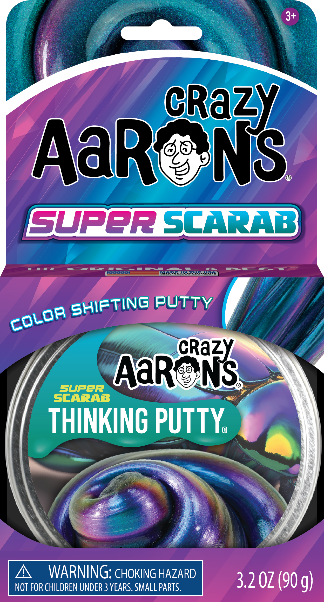 Watch Crazy Aaron's Super Scarab Thinking Putty shift colors as it reflects light from different directions. Includes one large tin. Ages 3 +.