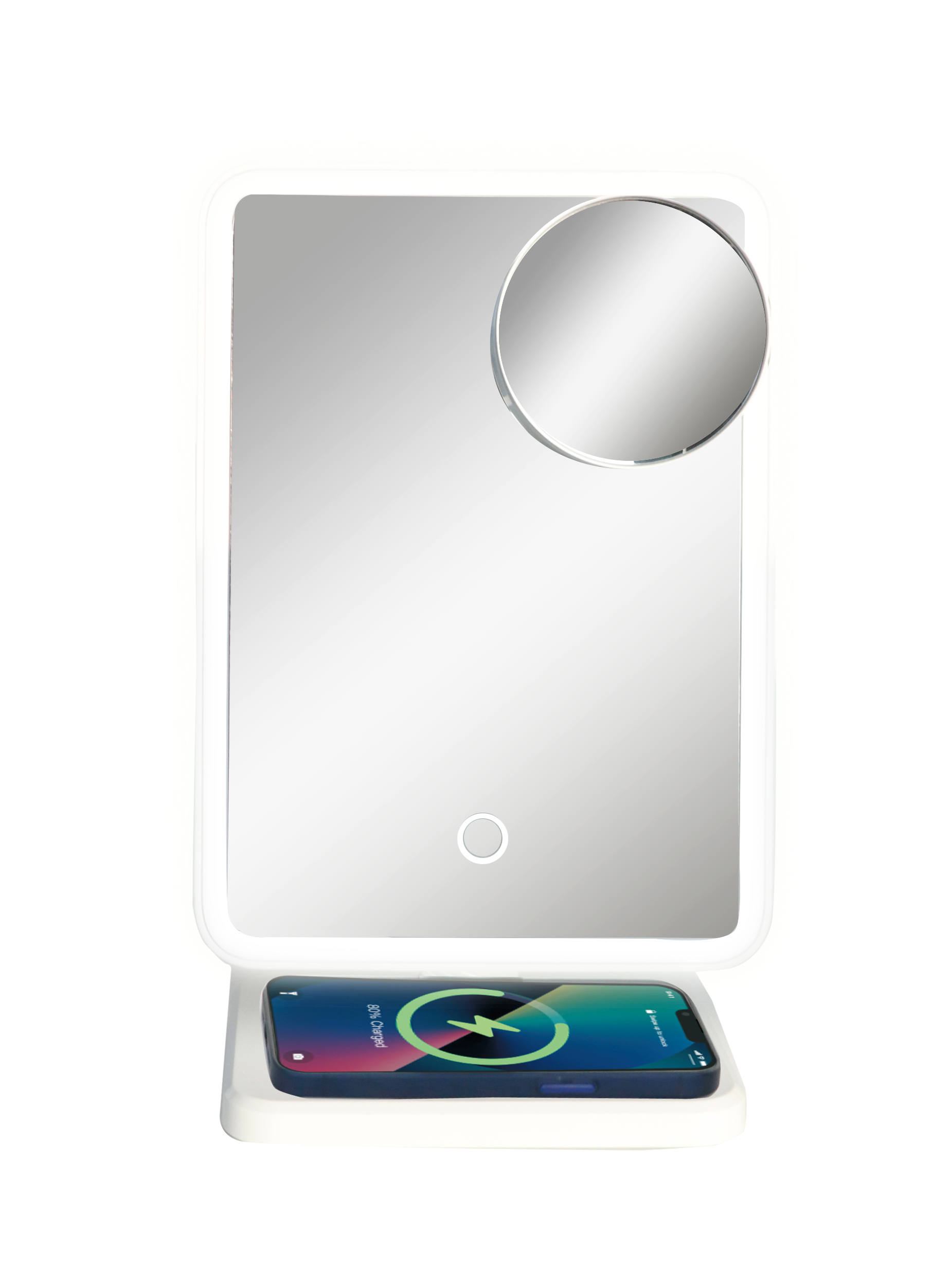 The Glam Studio Vanity Mirror with Bluetooth Speaker and Phone Holder is the perfect way to get ready for your day. With its three adjustable LED lighting settings, you can find the perfect light for any occasion. The built-in Bluetooth speaker lets you listen to your favorite music while you get ready, and the phone holder keeps your phone close by so you can stay connected. Color: White