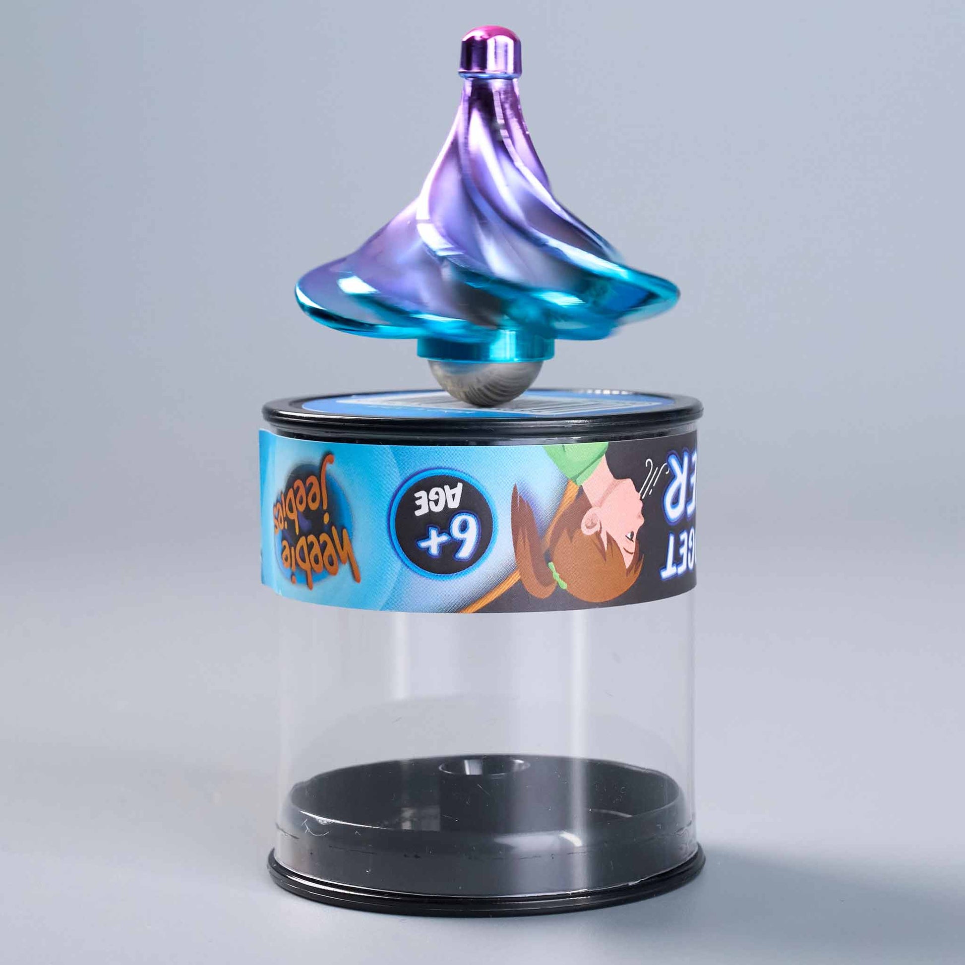 This top can be spun manually, but instead of relying on your fingers you can instead employ the principles of science. Direct a steady stream of air downward onto the top, and it will spring into motion! Enhance the airflow with a straw for a more focused effect, and it will continue spinning as long as you keep blowing. Modeled after wind or water turbines, this top offers an engaging lesson in aerodynamics and gyroscopic stability. Enjoy it "freestyle" on your desk or place it on its magnetic storage case. For an added experiment, suspend the top upside down and propel it with your breath! Whichever method you choose, this top promises an awe-inspiring demonstration. Approximately 4 cm (1.5") in height.